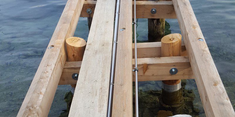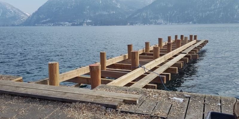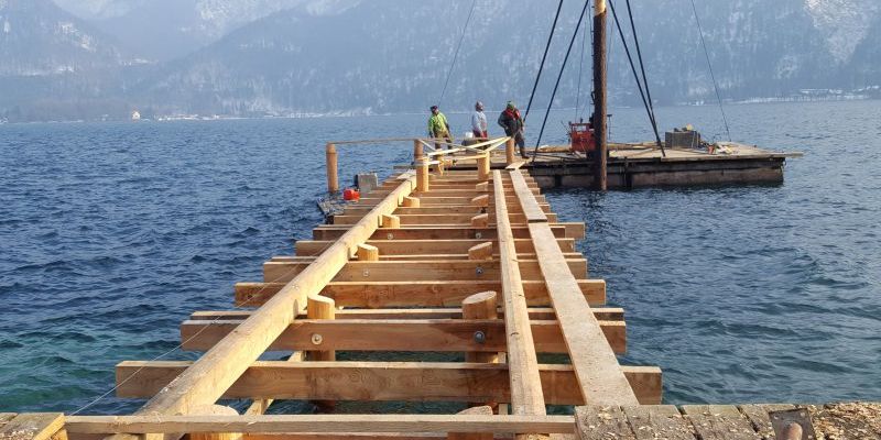 Am Steg für die Tagesliegeplätze (Schiffsanlagestelle) wird mit Hochdruck gearbeitet.